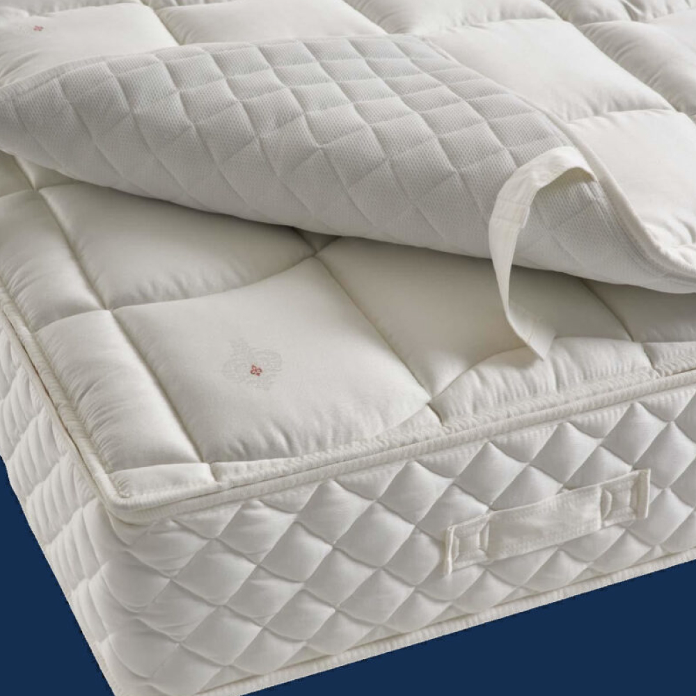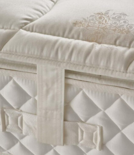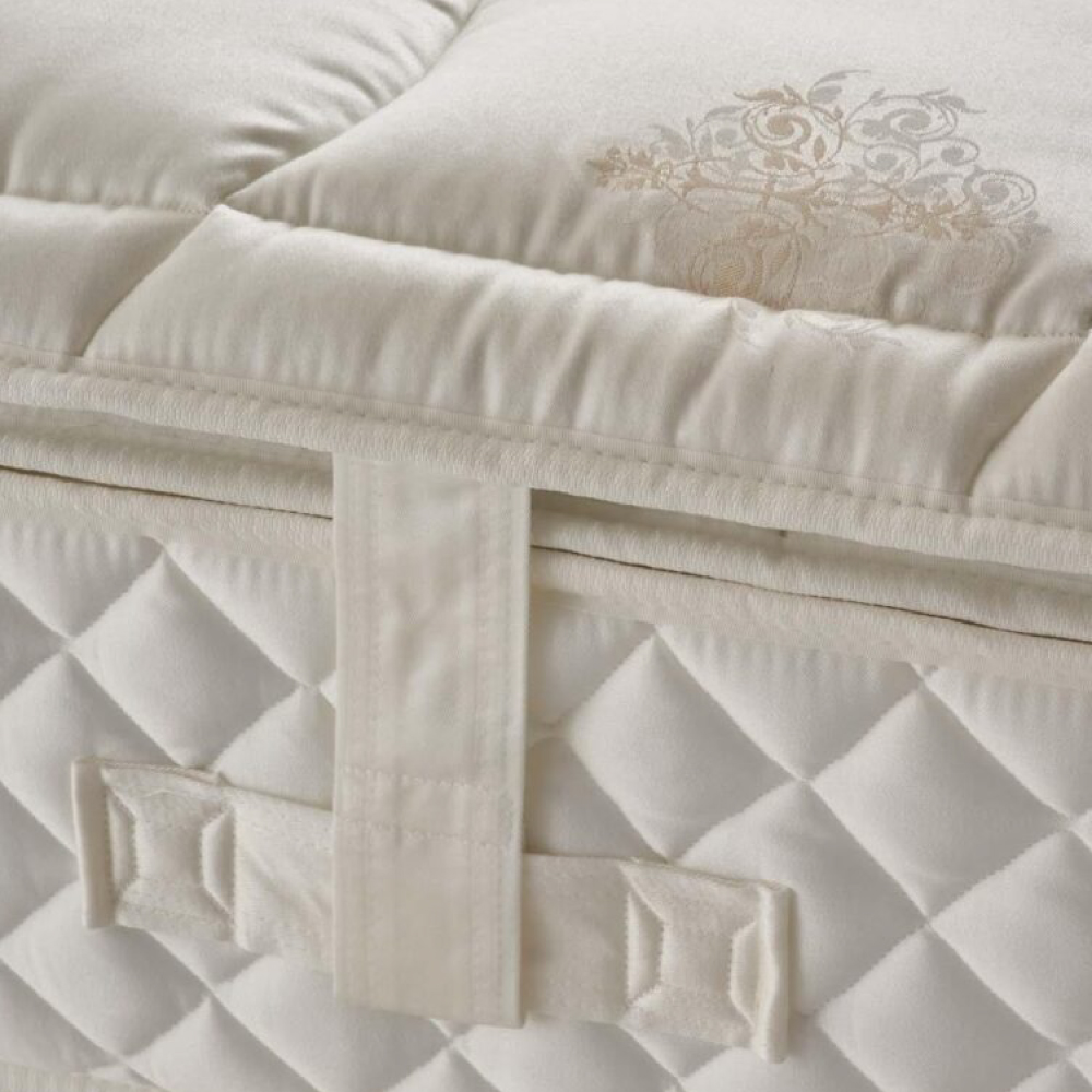 Topper Sganciabile trapuntato in tessuto coordinato al materasso con imbottitura a scelta tra 2 cm di memory foam,completo di 8 fettucce per ancoraggio alle maniglie del materasso con un comodo velcro.