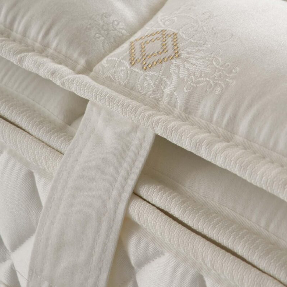 Imbottitura lato superiore del materasso con falda da 2 cm in misto lana e cotone e lato inferiore con falda da 1,5 cm in misto lana e cotone.