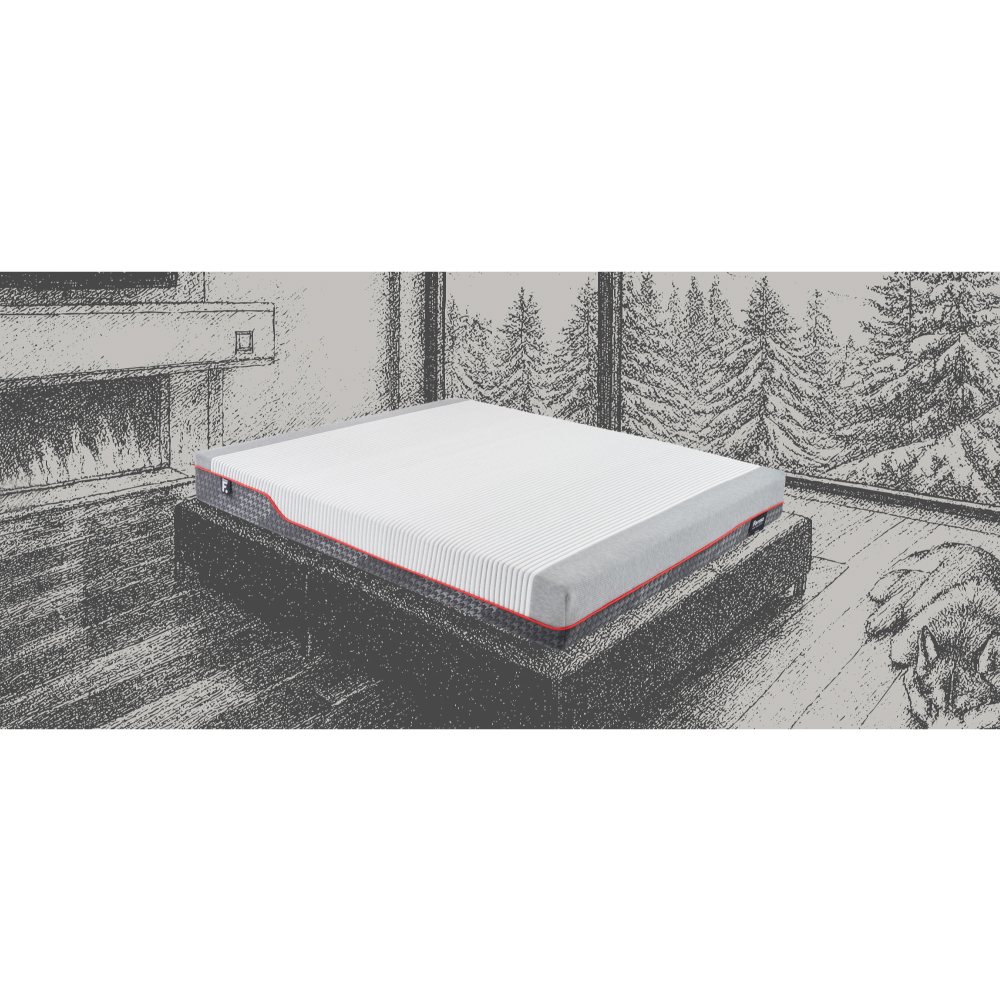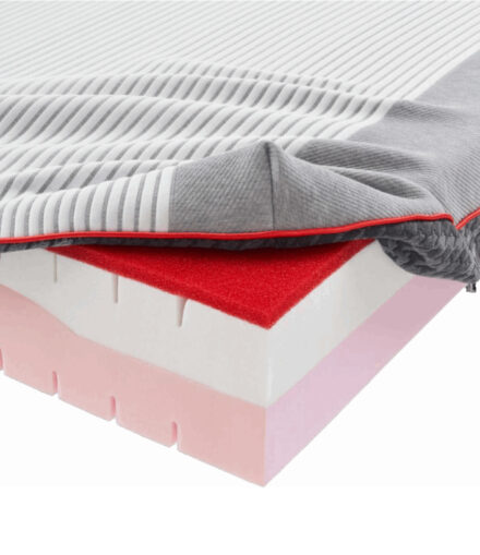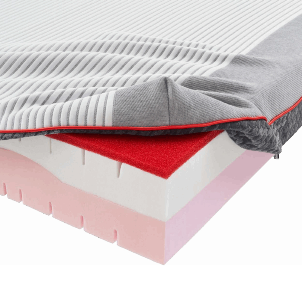 Triplo strato sagomato in 5 zone di portanza differenziata. Lastra composta da una base di poliuretano tecnico schiumato ad acqua D30 con 10 cm di memory