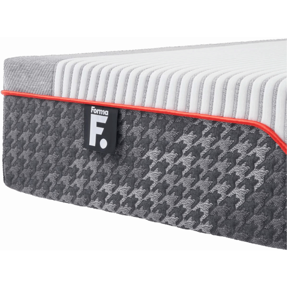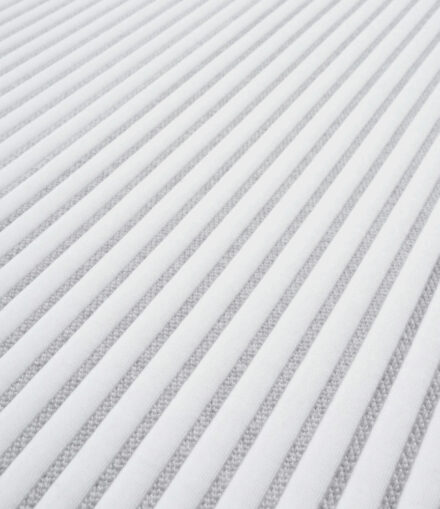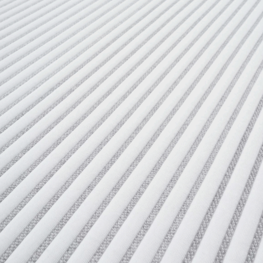 Fascia perimetrale completa di 8 maniglie per un ottimale ancoraggio del topper e zip nella parte superiore. Tirazip personalizzato Forma.Fascia perimetrale in due tessuti differenti, con la parte superiore in continuità con il rivestimento del materasso, e la parte inferiore in tessuto stretch pied poule