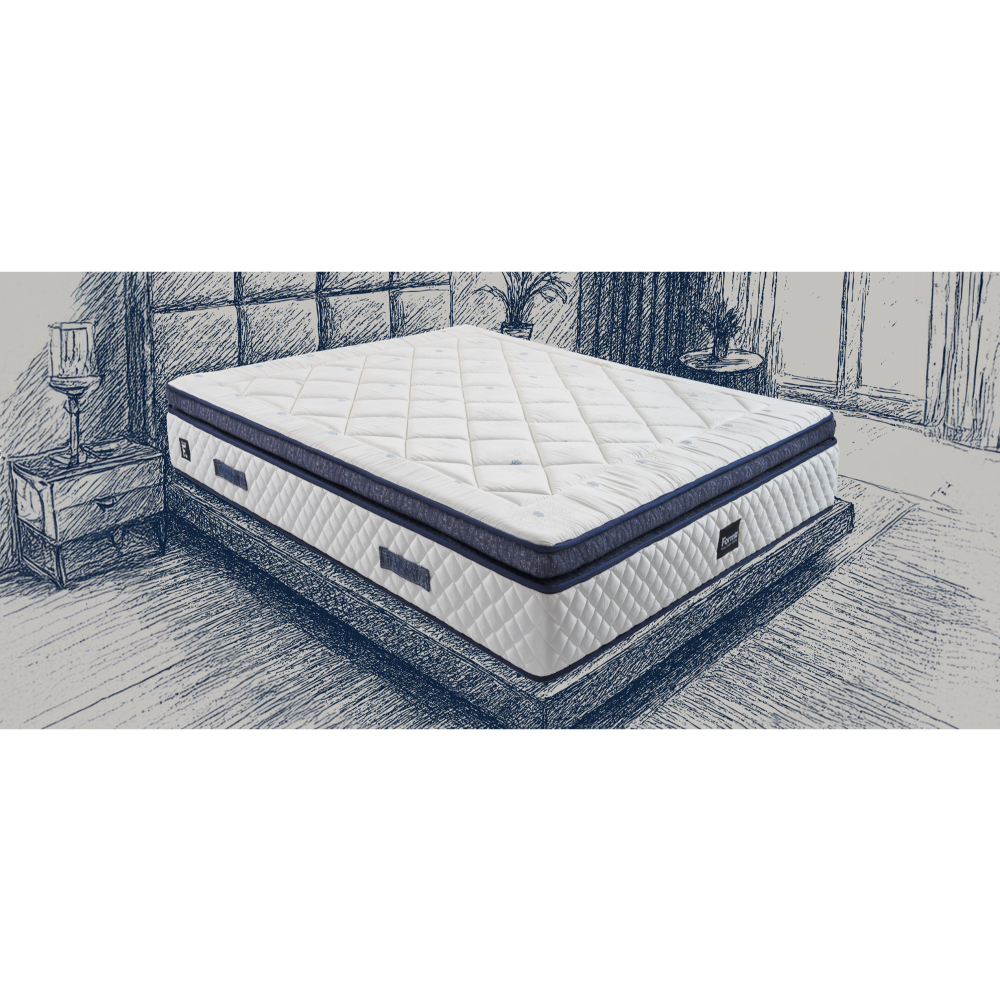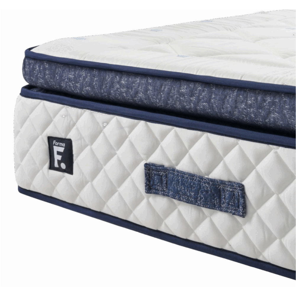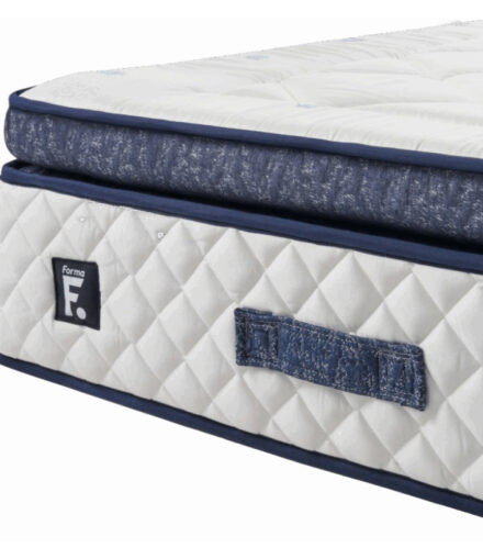 Lato superiore completo di Pillow Top con tessuto in jacquard di cotone da 540 gr/m² con trattamento Sanitized trapuntato con lavorazione artigianale ed imbottitura composta da 4 cm in memory foam D60 ed una falda in misto lana e cotone da 500 gr/m² H 3 cm. Lato inferiore in tessuto tecnico 3D ad altissima traspirabilità.