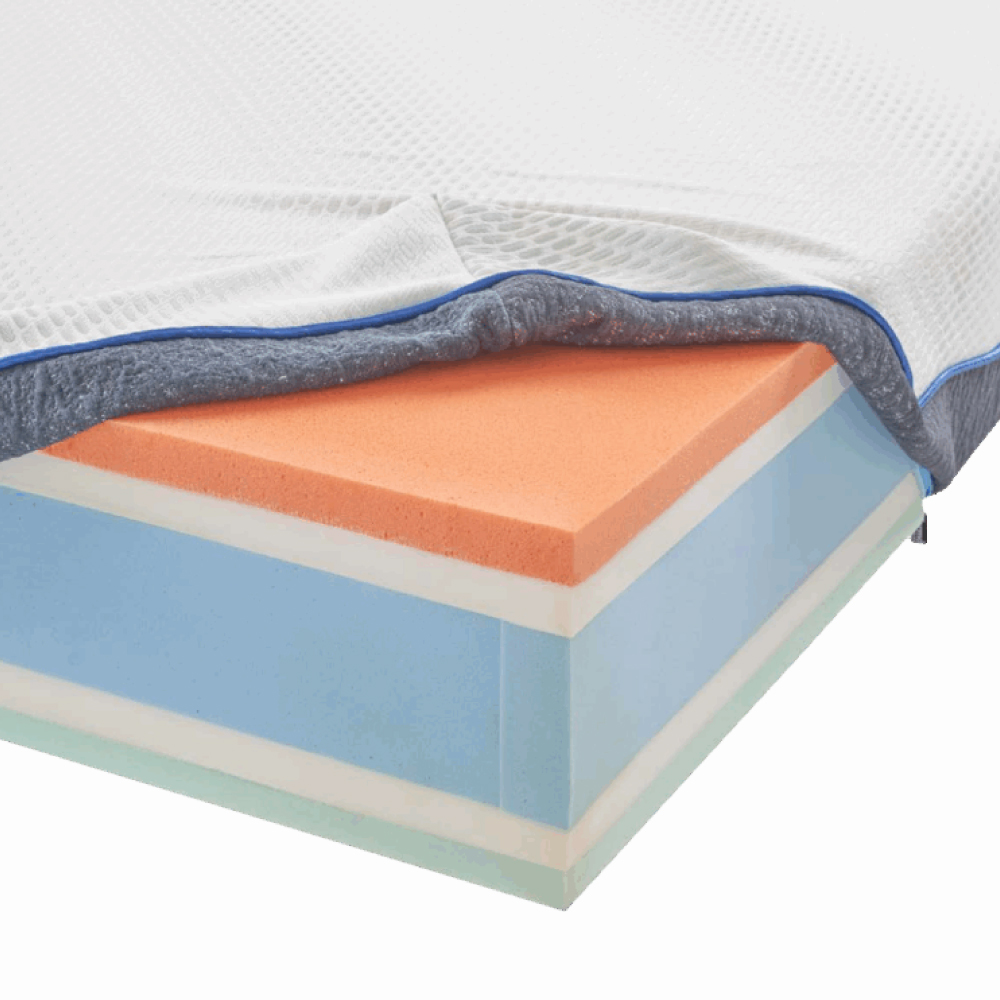 1100 molle insacchettate singolarmente con 7 zone di portanza differenziata, sistema di tenuta perimetrale Dutycool Box che dona robustezza e compattezza al materasso e 4 cm di memory foam D65.