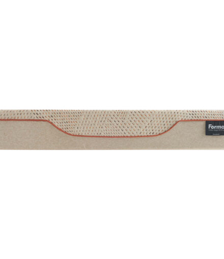 Fascia perimetrale in tessuto stretch color ecru ad elevata traspirabilità e piping color bronzo a definire l’incontro dei due tessuti tono su tono e l’originale svaso.