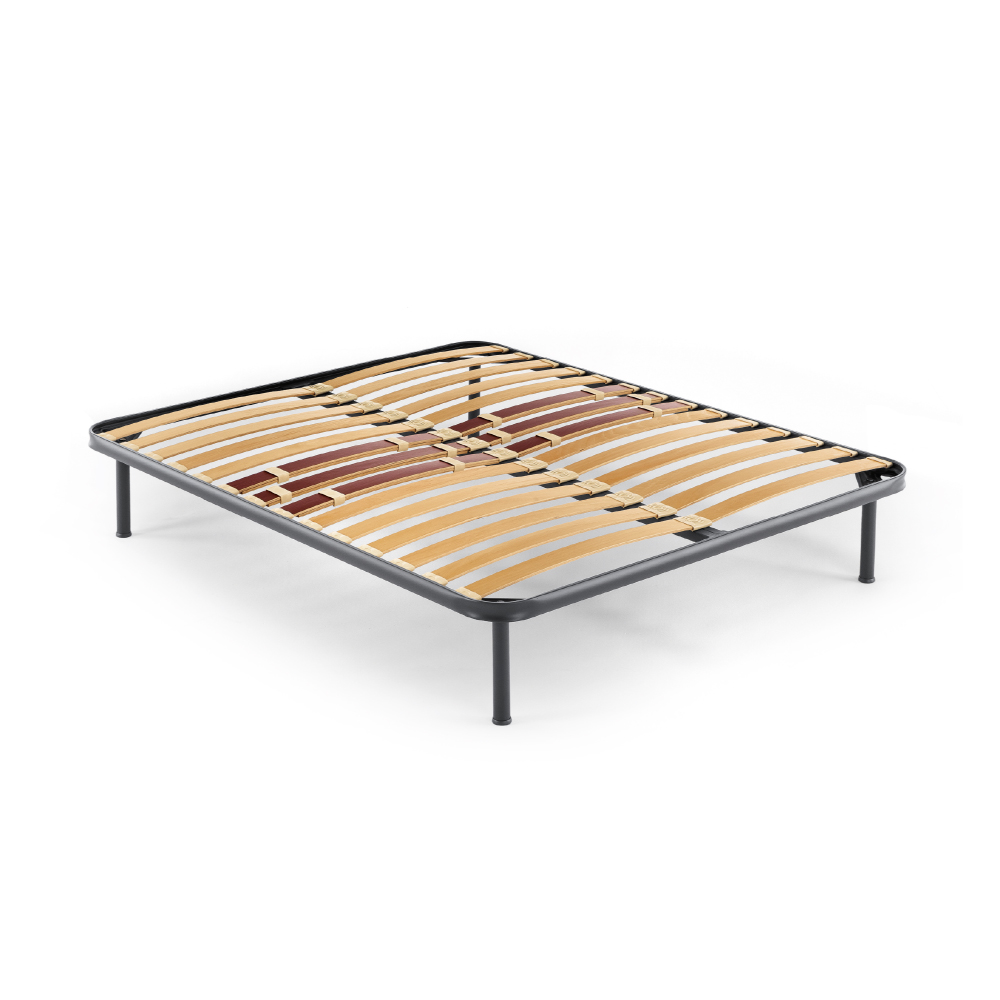 Rete in acciaio e doghe in legno solida e robusta, adatta anche per pesi importanti, Kamila 100 รจ una rete per materassi singola, matrimoniale, matrimoniale XL o a una piazza e mezza. Il telaio รจ in tubolare di acciaio e il piano di riposo dispone di listelle in multistrato di faggio, ancorate con supporti in nylon anticigolio, regolabili nella zona lombare per personalizzare il livello di rigiditร preferito.